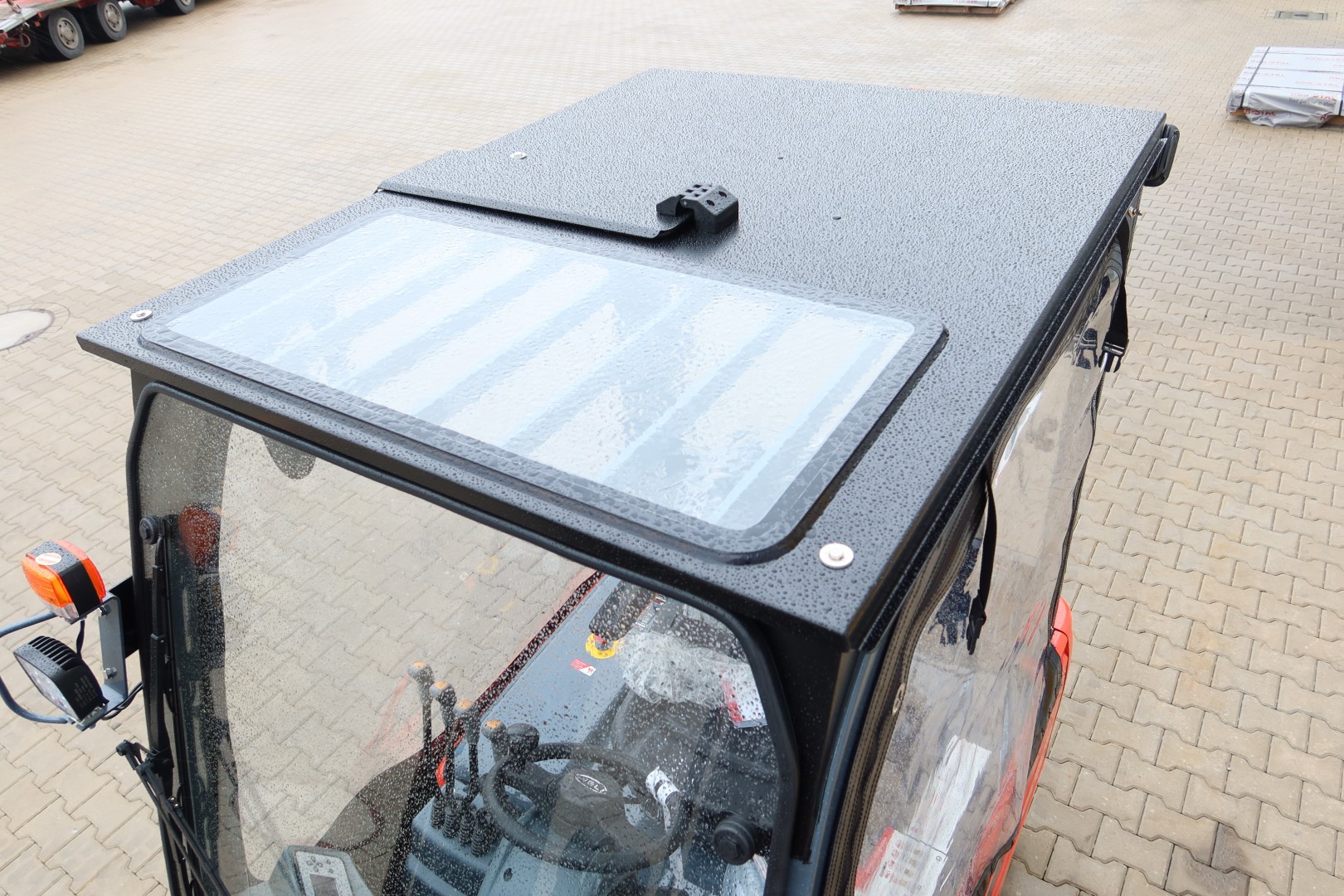 Kabina do tego modelu wózka to nowoczesne rozwiązanie łączące lekkość konstrukcji z dużą powierzchnią przeszklenia, gwarantujące doskonałą widoczność i komfort pracy w każdych warunkach atmosferycznych. Ergonomiczny design, trwałe materiały oraz staranne wykonanie sprawiają, że kabina zapewnia nie tylko bezpieczeństwo, ale także wygodę użytkowania w każdym, nawet najbardziej wymagającym otoczeniu.