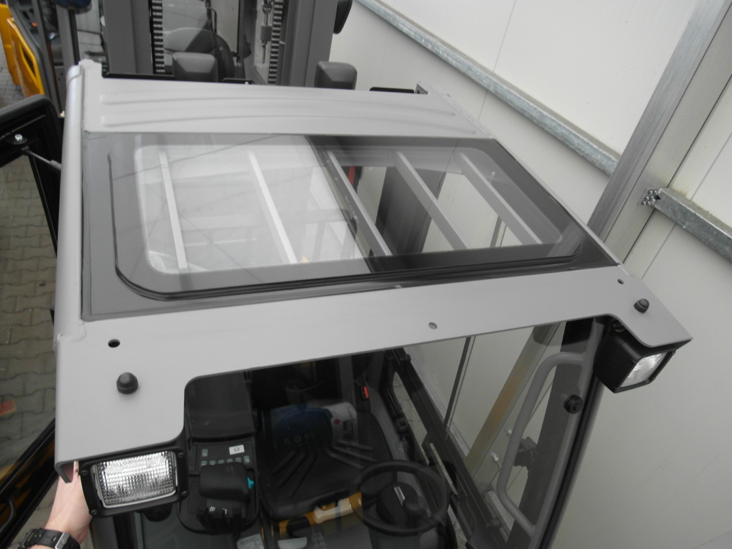 Kabina do tego modelu wózka to nowoczesne rozwiązanie łączące lekkość konstrukcji z dużą powierzchnią przeszklenia, gwarantujące doskonałą widoczność i komfort pracy w każdych warunkach atmosferycznych. Ergonomiczny design, trwałe materiały oraz staranne wykonanie sprawiają, że kabina zapewnia nie tylko bezpieczeństwo, ale także wygodę użytkowania w każdym, nawet najbardziej wymagającym otoczeniu.