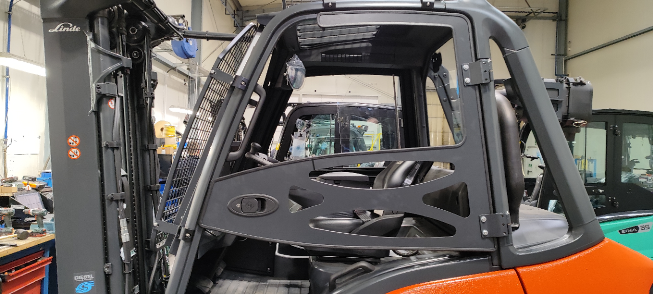 Kabina do tego modelu wózka to nowoczesne rozwiązanie łączące lekkość konstrukcji z dużą powierzchnią przeszklenia gwarantujące doskonałą widoczność i komfort pracy w każdych warunkach atmosferycznych. Ergonomiczny design, trwałe materiały oraz staranne wykonanie sprawiają, że kabina zapewnia nie tylko bezpieczeństwo, ale także wygodę użytkowania w każdym, nawet najbardziej wymagającym otoczeniu.